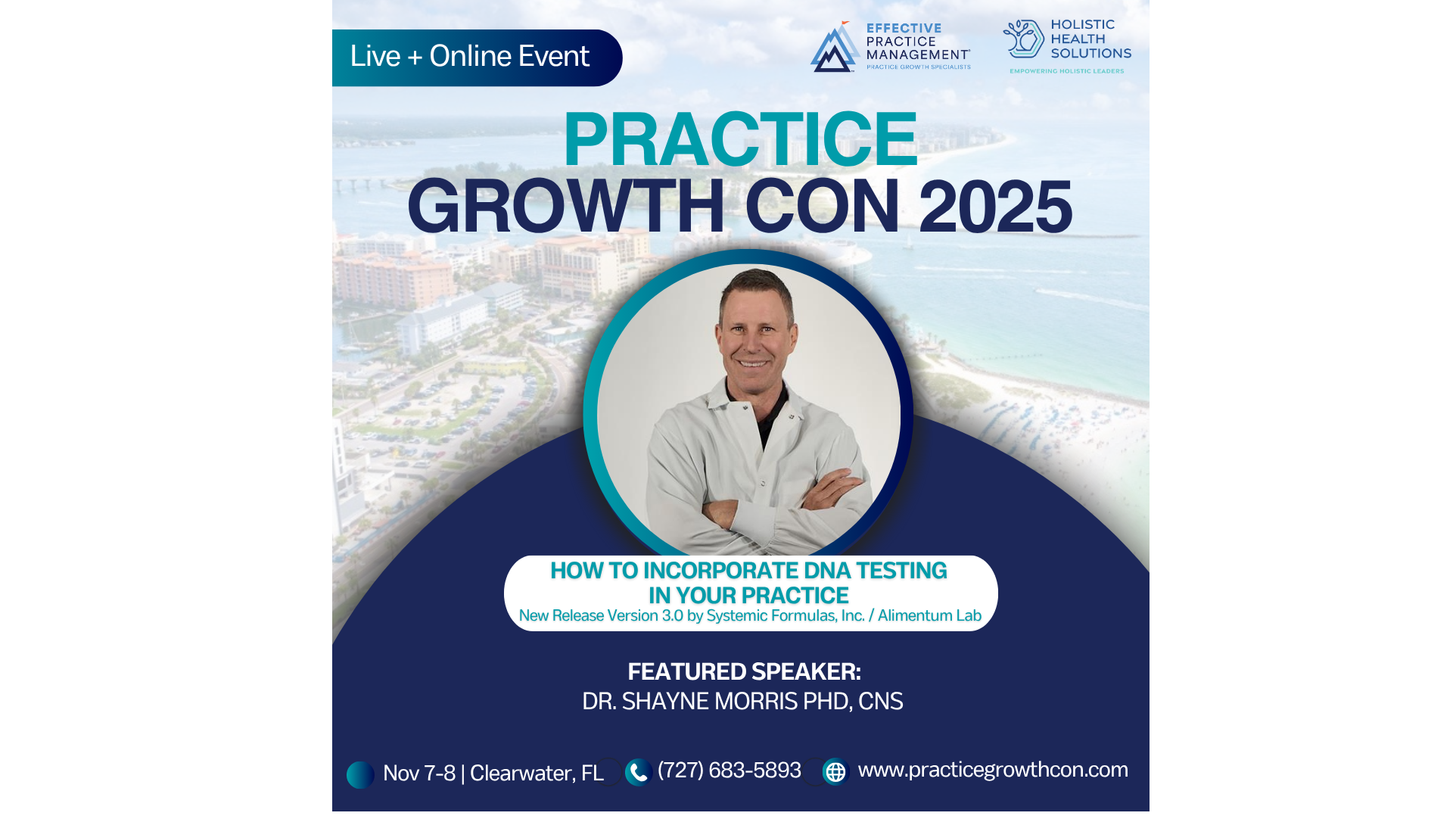 Dr. Shayne Morris will officially release MYDNA 3.0 during the Holistic Health Solutions Practice Growth Con 2025, where he will conduct an interactive workshop for practitioners. Attendees will receive hands-on training to integrate the new protocol into their practices immediately, helping them attract new patients and improve clinical outcomes through personalized nutrition strategies.