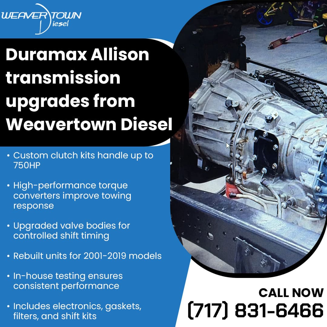 Trucks can perform at their best with upgraded Duramax Allison transmissions. For more information on Allison transmissions for sale or Allison transmission upgrades, contact Weavertown Diesel at (717) 831-6466 or email weavertowndiesel@gmail.com.