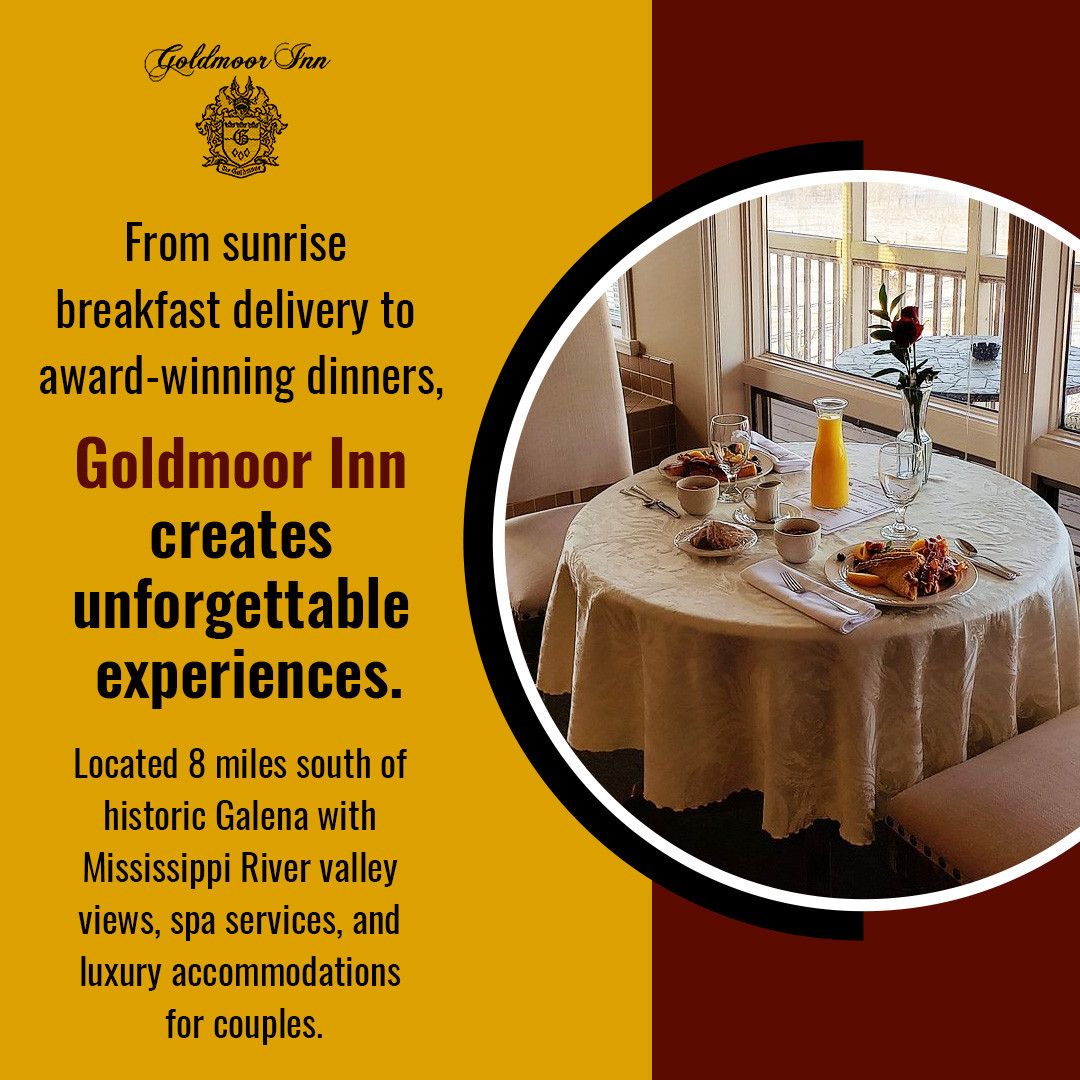 Galena, IL- Goldmoor Inn, a luxury Galena bed and breakfast, is spotlighting the experience of a stay that unfolds from sunrise to sunset. With unique accommodations, fine dining, spa treatments, and access to historic attractions, the inn distinguishes itself among the best places to stay in Galena, IL.