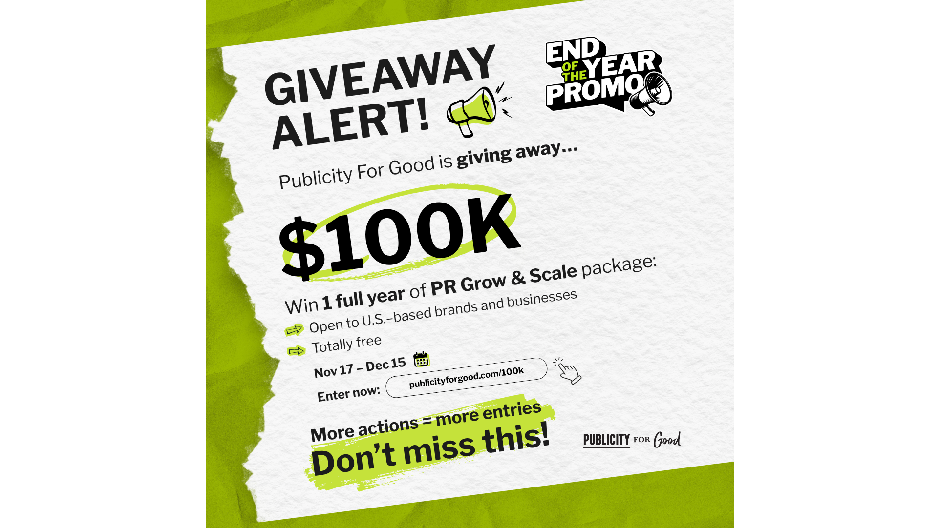 Interested parties can learn more at https://publicityforgood.com/100k