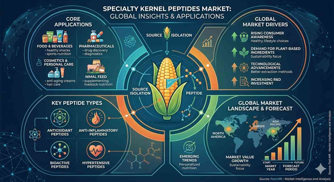 The future of Germany’s speciality kernel peptides market lies in sustainability and precision. By 2030, the integration of circular economy principles—using upcycled kernels from the food industry—will be standard. Long-term opportunity resides in the convergence of pharma-grade peptides with daily functional foods, creating a new “medicated-nutrition” category.