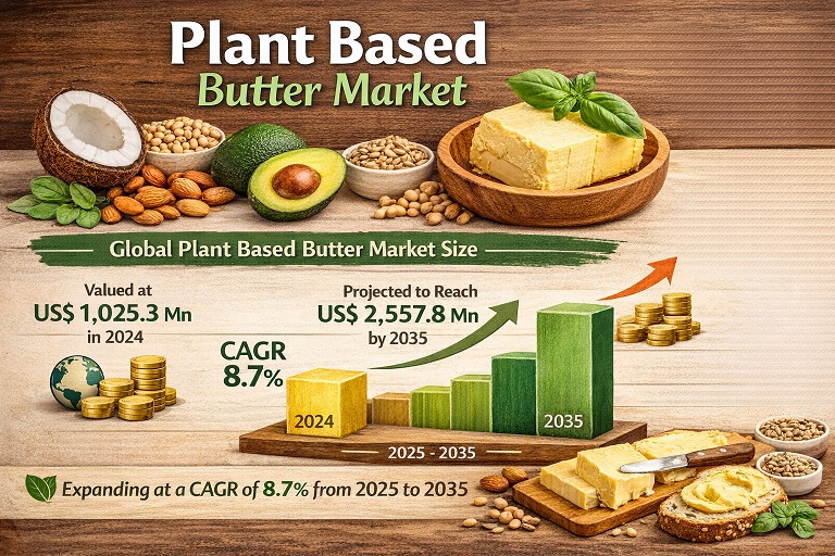 Plant Based Butter Market Projected to Attain USD 2,557.8 Million by 2035 Driven by Rising Dairy-Free Consumption