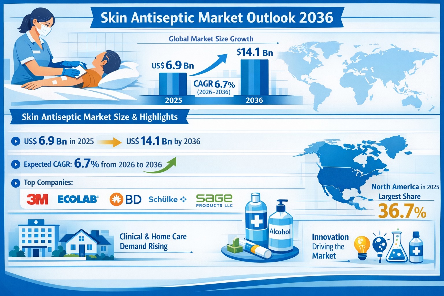 Skin Antiseptic Market to Reach US$ 14.1 Billion by 2036, Growing at 6.7% CAGR on Rising Infection Control Demand | TMR